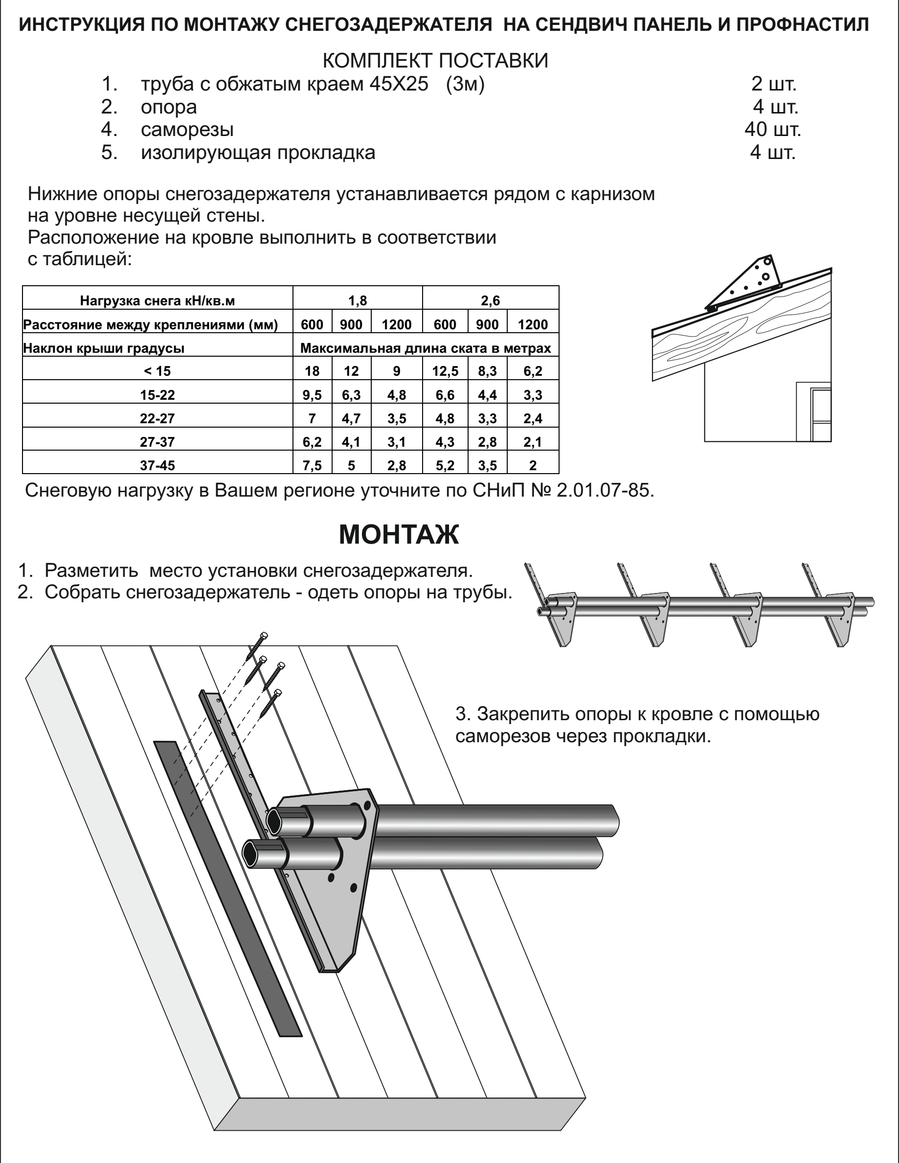 Инструкция по монтажу снегозадержателей Snow Kit