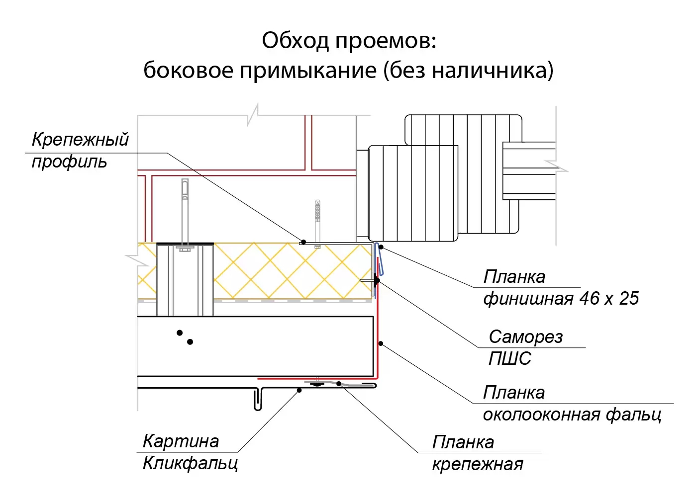 Обход проемов верхнее примыкание без наличника