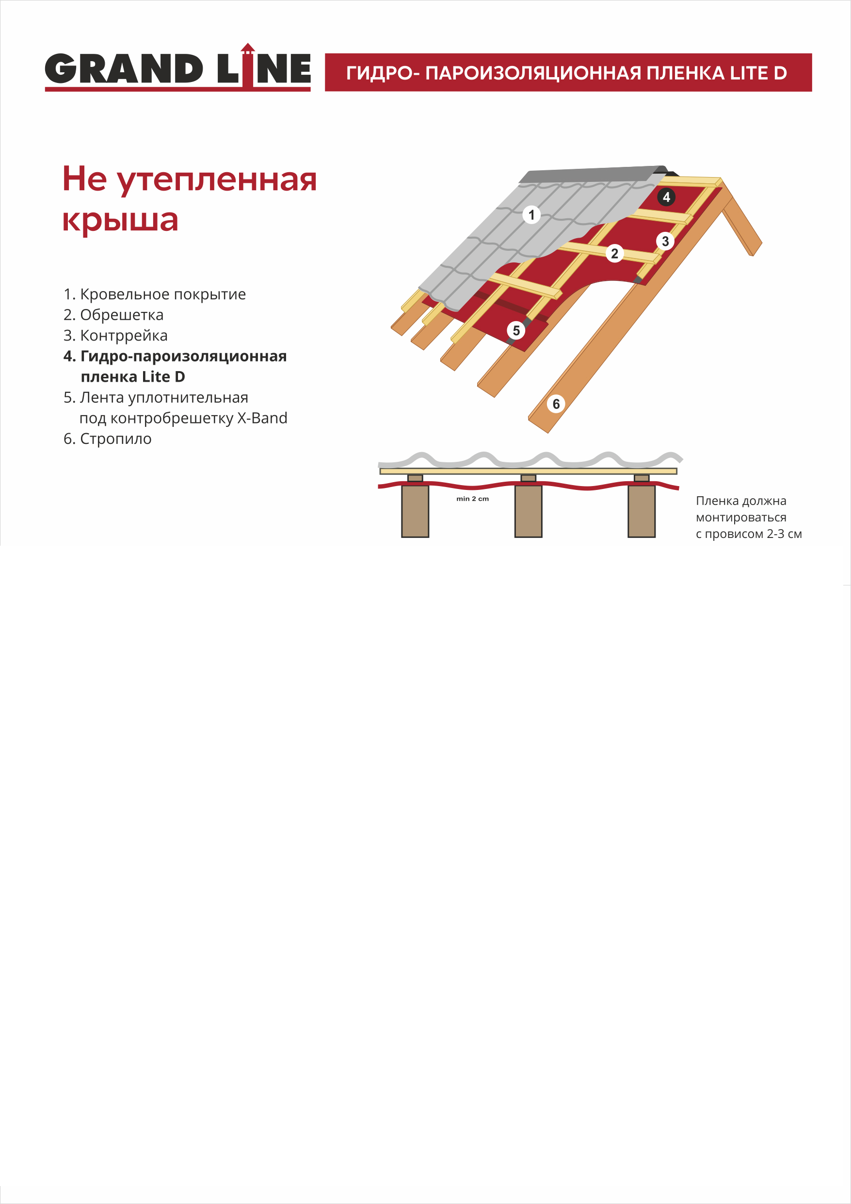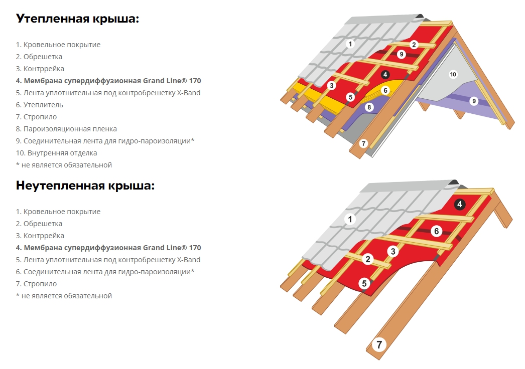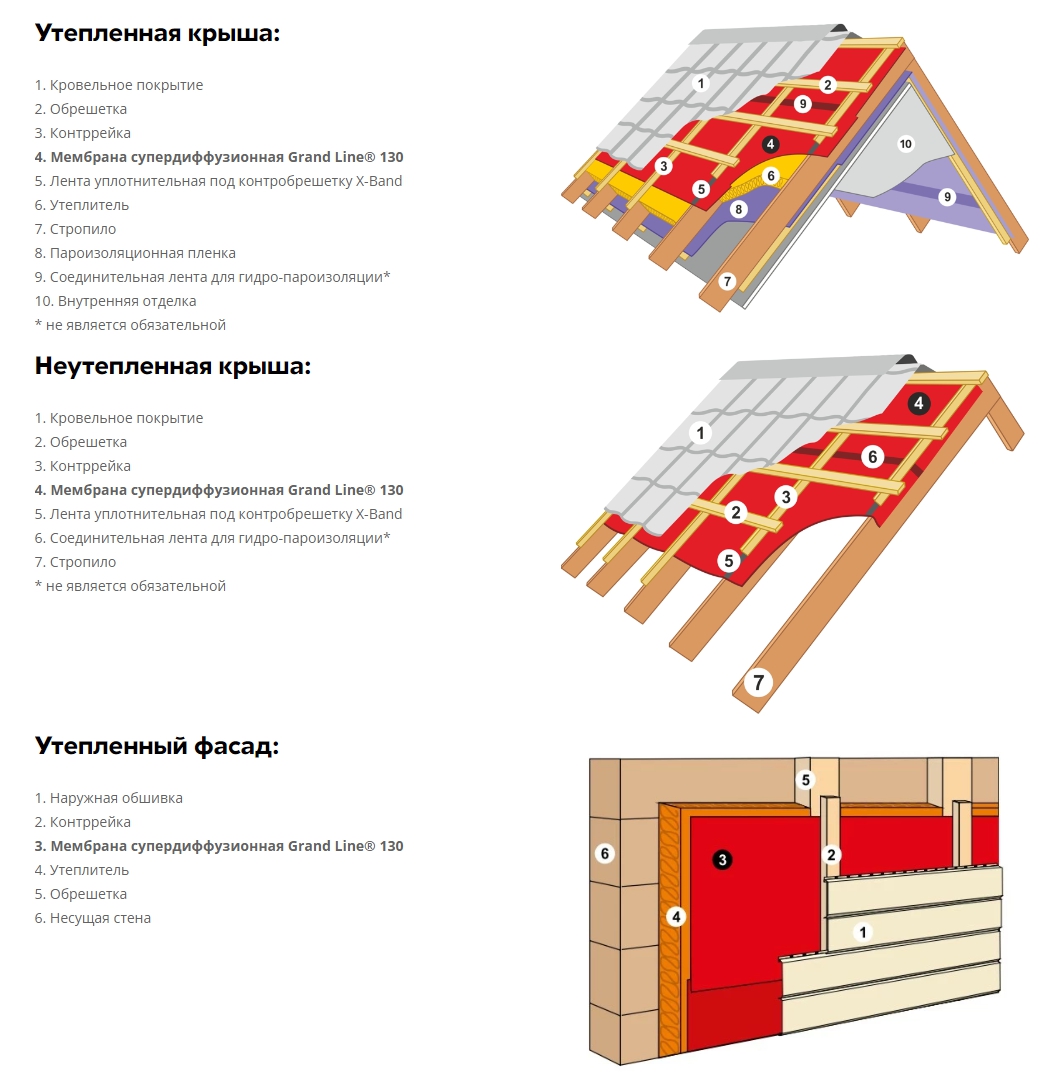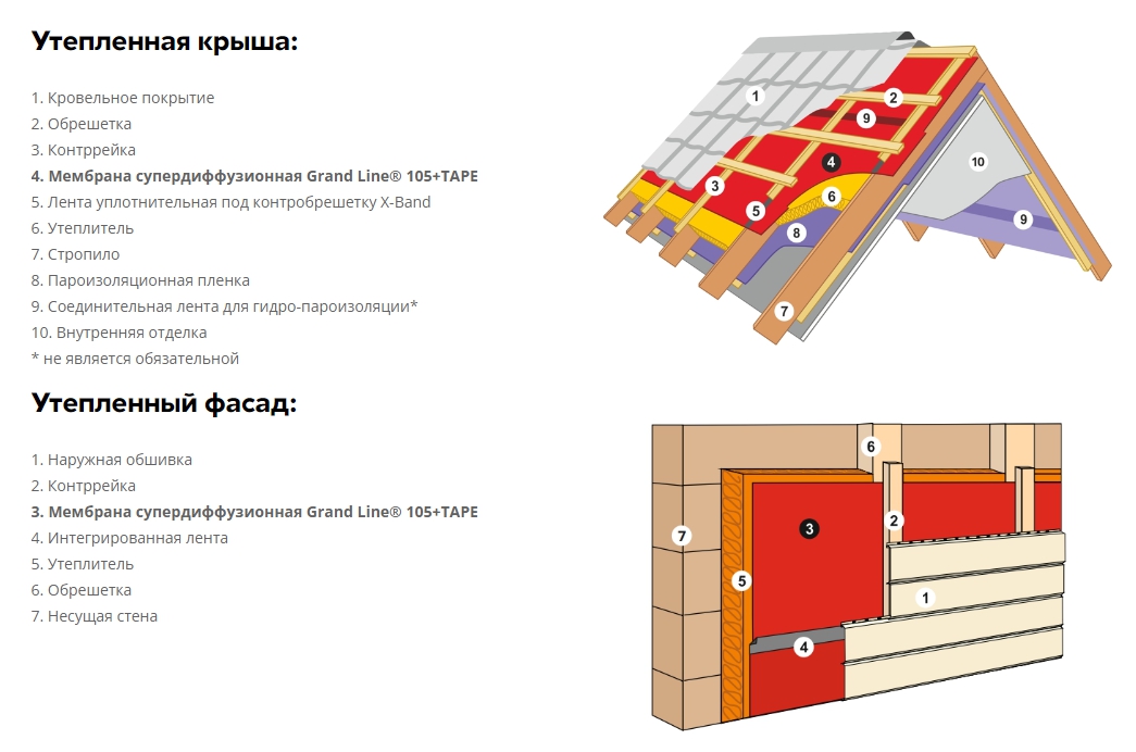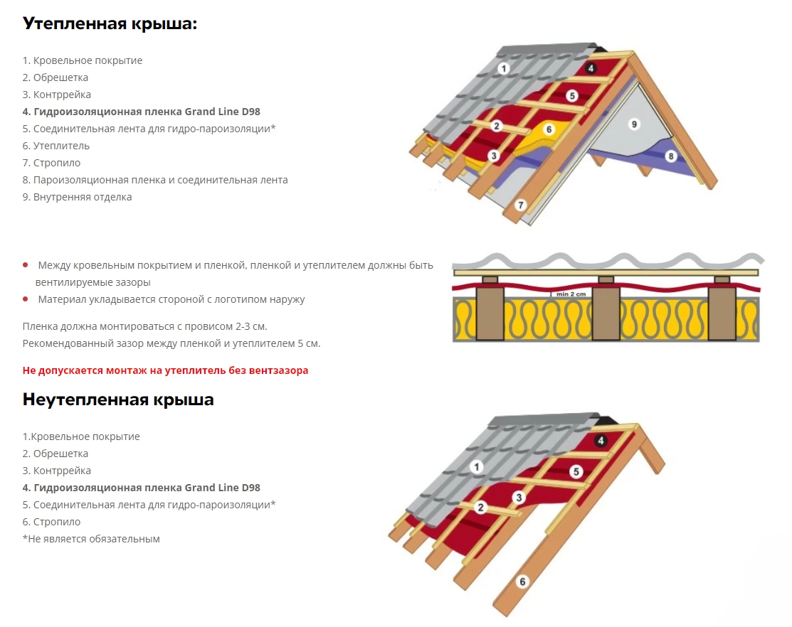 Схема монтажа гидро-пароизоляционной пленки Grand Line Lite D