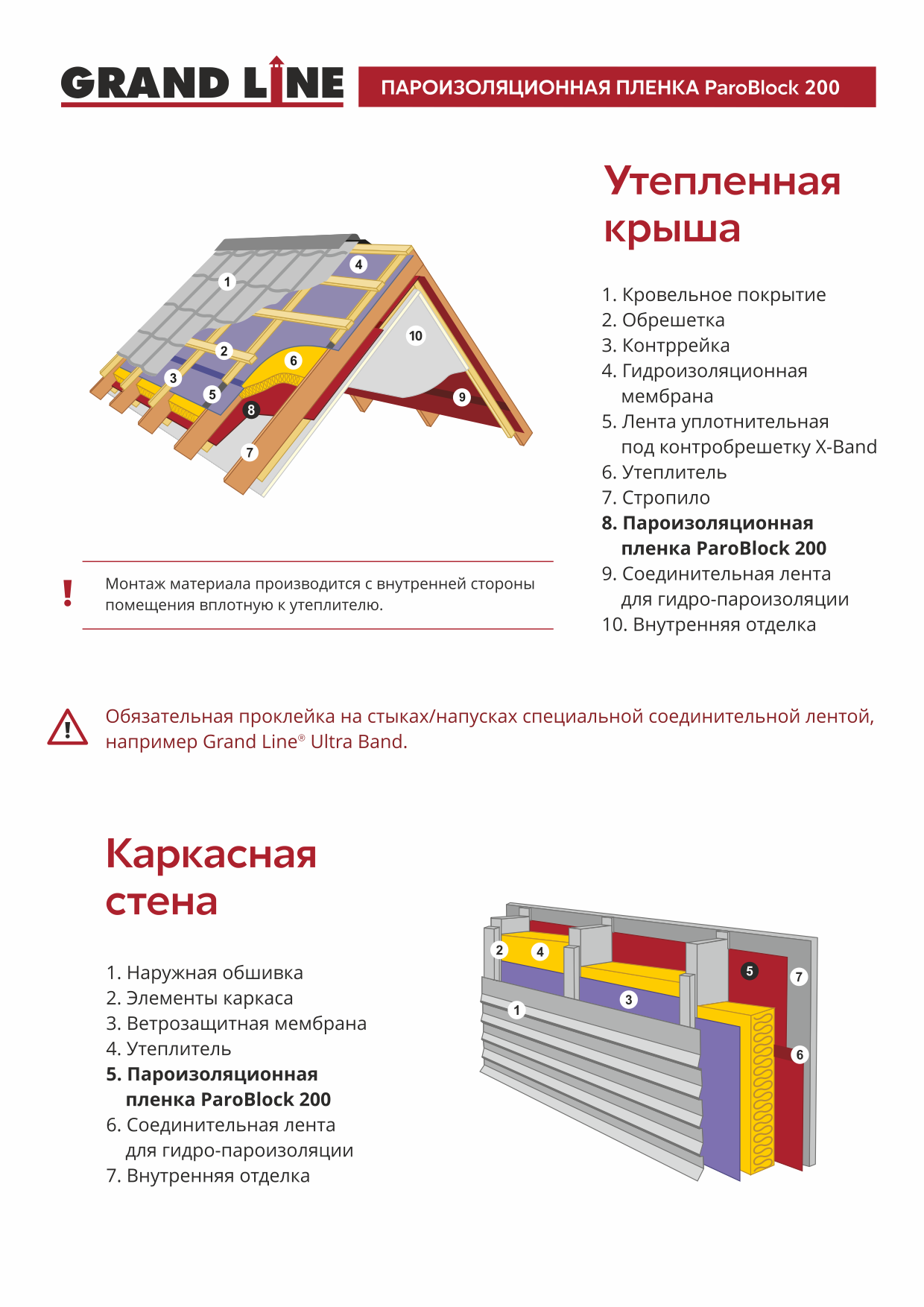Схема монтажа пароизоляционной пленки ParoBlock 200