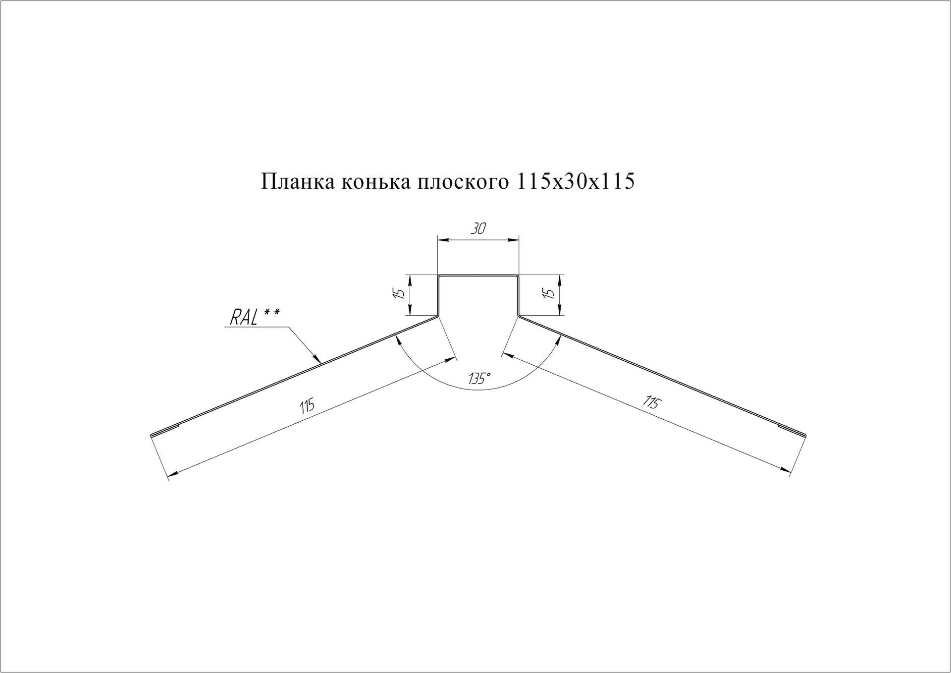 Планка конька плоского 115х30х115 0,4 PE с пленкой RAL 3005 красное вино